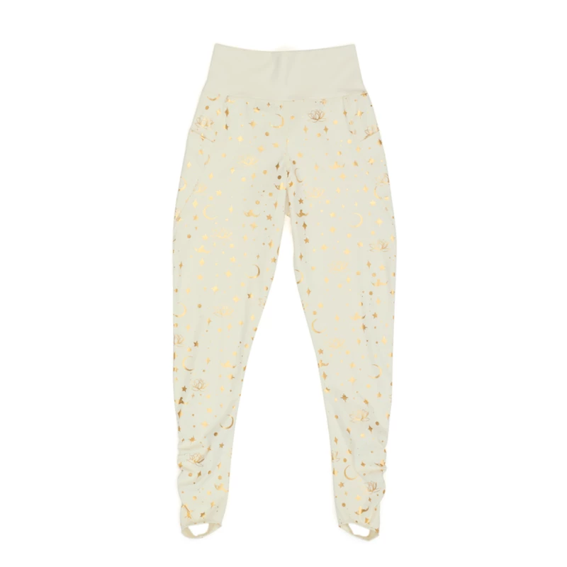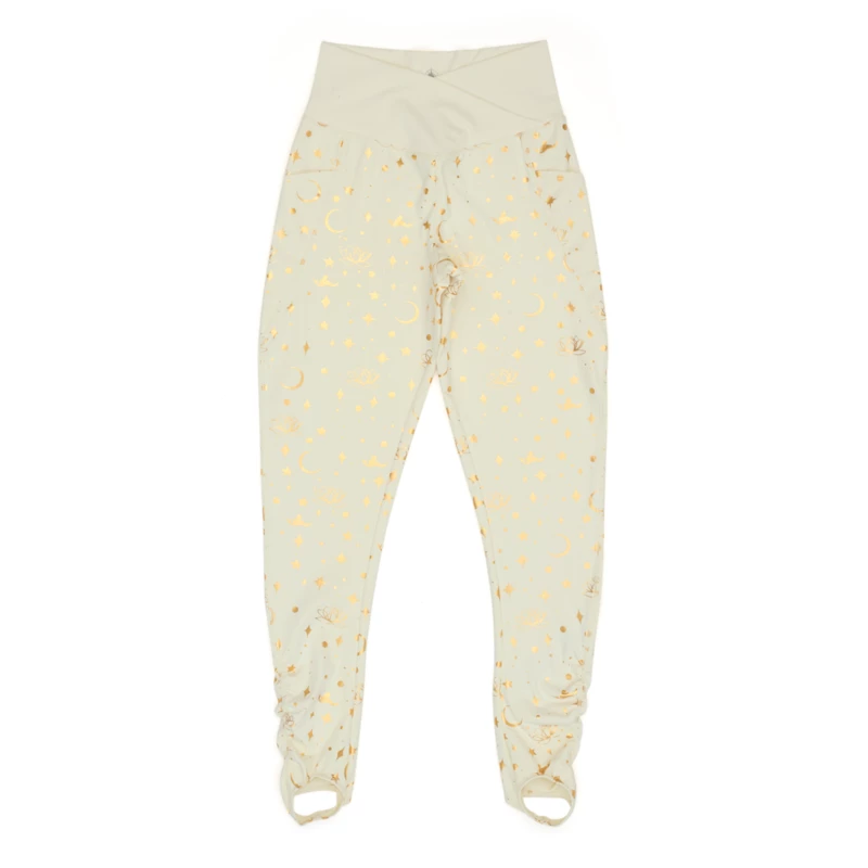 Amazing style worthy of royalty defines these glamorous Jasmine stirrup leggings. You’ll stand out in the allover metallic gold print of Jasmine flying a magic carpet in silhouette amid a flurry of pretty icons inspired by Disney’s Aladdin. Fashionable and flattering details like the V-waistband and stirrup cuffs make them as distinctive and special as you are.