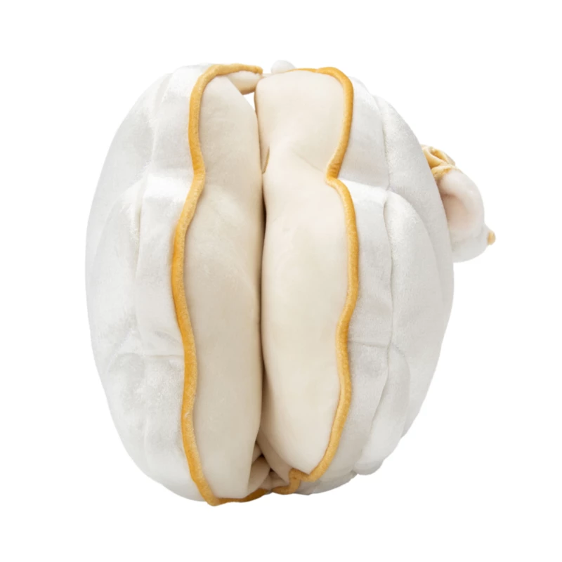 - Open the shell to reveal an intricate golden embroidered picture of the classic couple dancing with intertwined tails on one side and the word ‘LOVE’ on the other